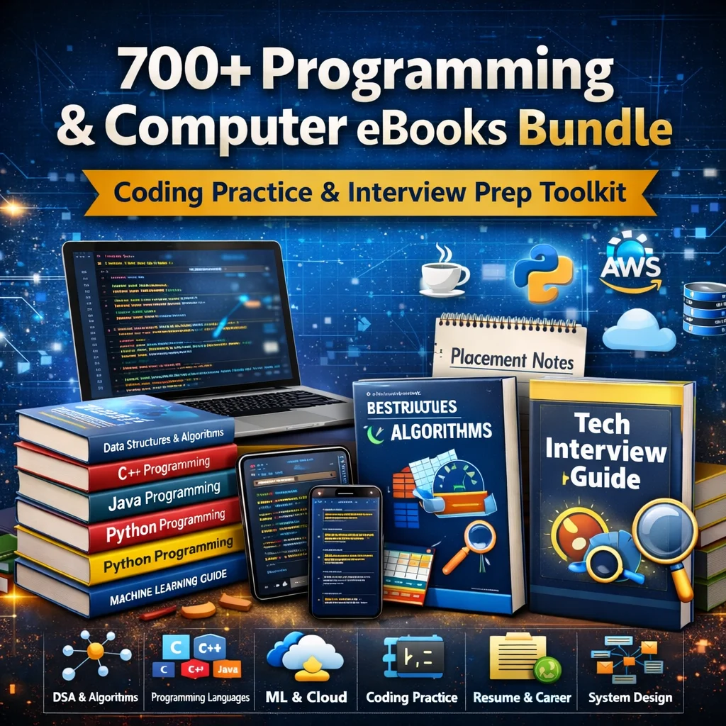 This bundle includes 700+ premium Computer Science eBooks and preparation resources, covering core fundamentals, programming languages, coding practice, and interview readiness—from beginner to advanced level.