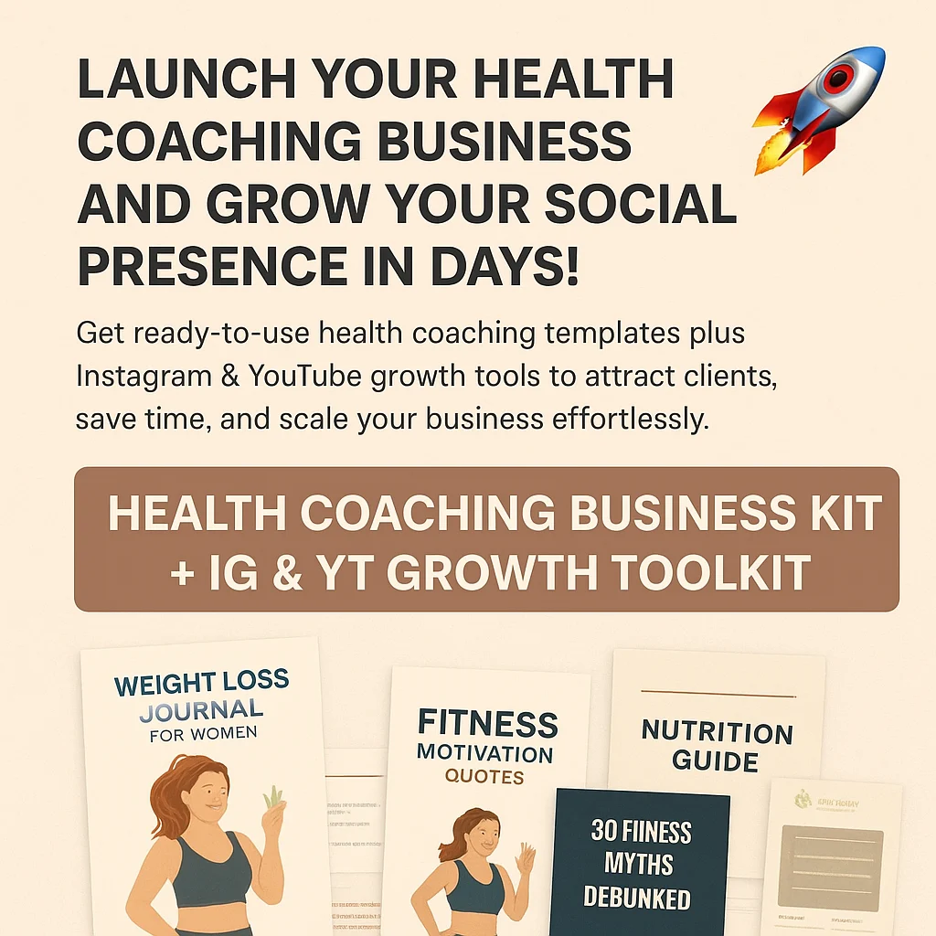 Kickstart and grow your health coaching business with the Health Coaching Business Kit + IG & YT Growth Toolkit! This all-in-one combo provides ready-made, customizable templates for coaching programs and proven social media growth strategies so you can save time, attract clients, and build authority quickly.